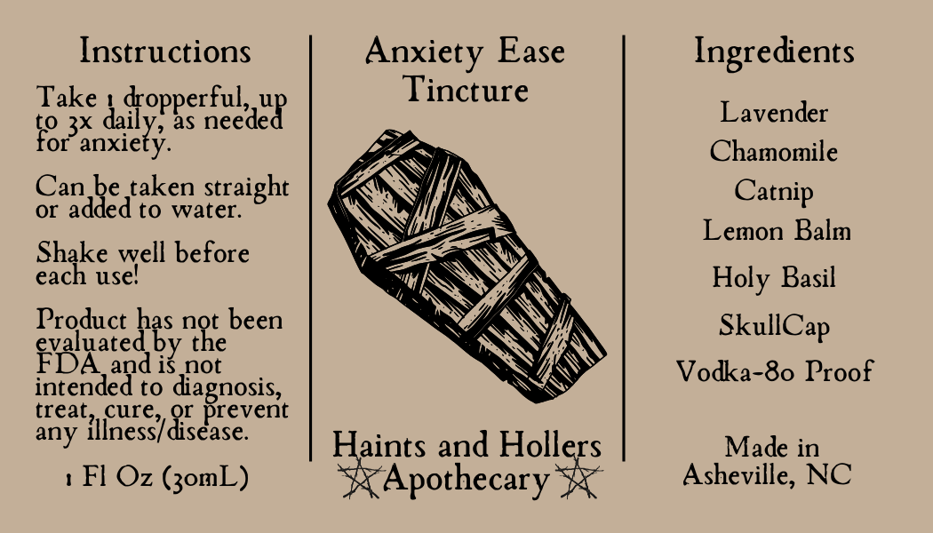 This Anxiety-Ease tincture blend was designed to promote calmness and relaxation in moments of high stress to help the body self-regulate and find balance. Made with multiple complimenting nervines that are renowned for their soothing properties and ability to alleviate anxiety while enhancing overall well-being.